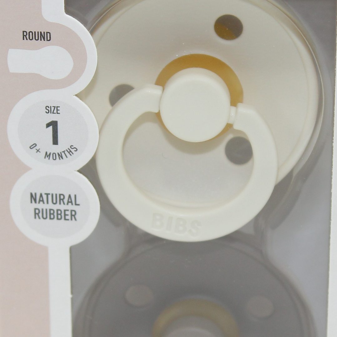 BIBS Pacifier Colour 2 Pack – Latex Size 1 Ivory/Dark Oak