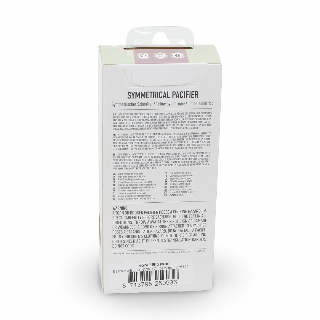 BIBS Pacifier Infinity 2 Pack – Symmetrical Silicone Size 2 Ivory/Blossom