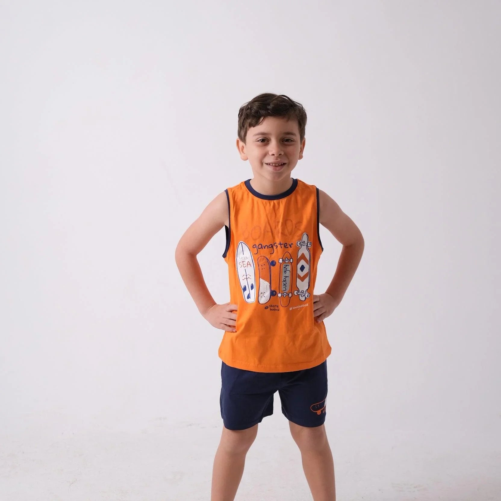 استرخي واستمتع بالراحة طوال اليوم مع طقم بيجامة بدون أكمام مكون من قطعتين. سوف يحافظ القميص والسراويل القصيرة بدون أكمام على طفلك الصغير حرًا وباردًا طوال اليوم. سيضمن حزام الخصر ملاءمة مثالية. إنه مثالي لليالي الصيف الحارة.