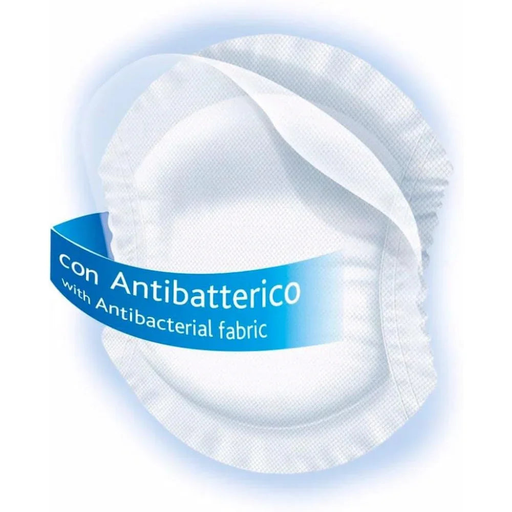وسادات الثدي المضادة للبكتيريا من شيكو تمتص تسرب الحليب بين الوجبات وتحافظ على الجلد جافًا. توفر هذه الضمادة امتصاصًا مزدوجًا مقارنة بالفوط الكلاسيكية بفضل اللآلئ التي تحول الحليب المتسرب إلى هلام. تم اختبار الضمادات الحريرية المسامية من قبل أطباء الجلدية للمساعدة في تجنب التهاب الحلمات ، ولها نسيج خاص مضاد للبكتيريا لا يسمح للبكتيريا بالتكاثر داخل الرقعة. عبوة تحتوي على 60 قطعة