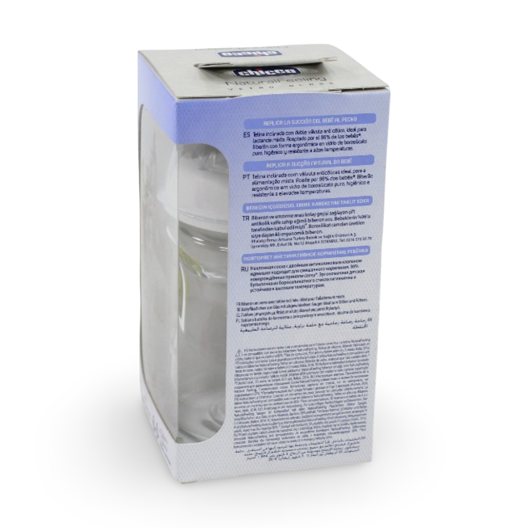 هذه الزجاجة ليست فقط مصنوعة من زجاج متين وغير سام، ولكنها تتميز أيضًا بصمام مضاد للمغص لتقليل خطر الانزعاج والغازات لطفلك. التصميم المريح للزجاجة يجعل من السهل على الآباء حمل أطفالهم وإطعامهم، بينما تسمح الرقبة الواسعة بسهولة التنظيف والتعبئة. بالإضافة إلى ذلك، تتوافق الزجاجة الزجاجية ذات الملمس الطبيعي من شيكو مع جميع حلمات شيكو ذات الملمس الطبيعي، مما يمنحك المرونة في اختيار أفضل ما يناسب احتياجات طفلك.