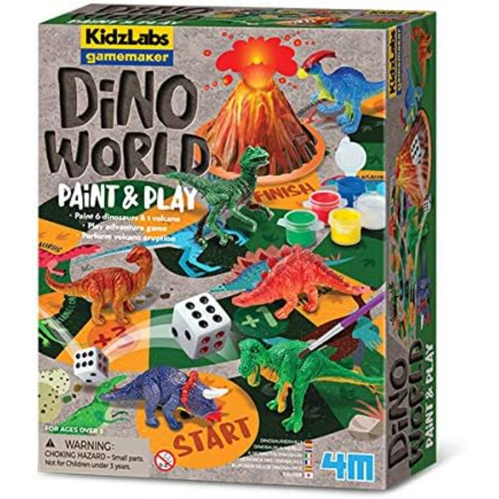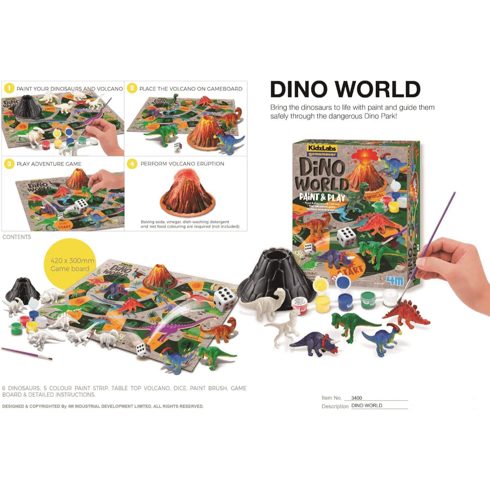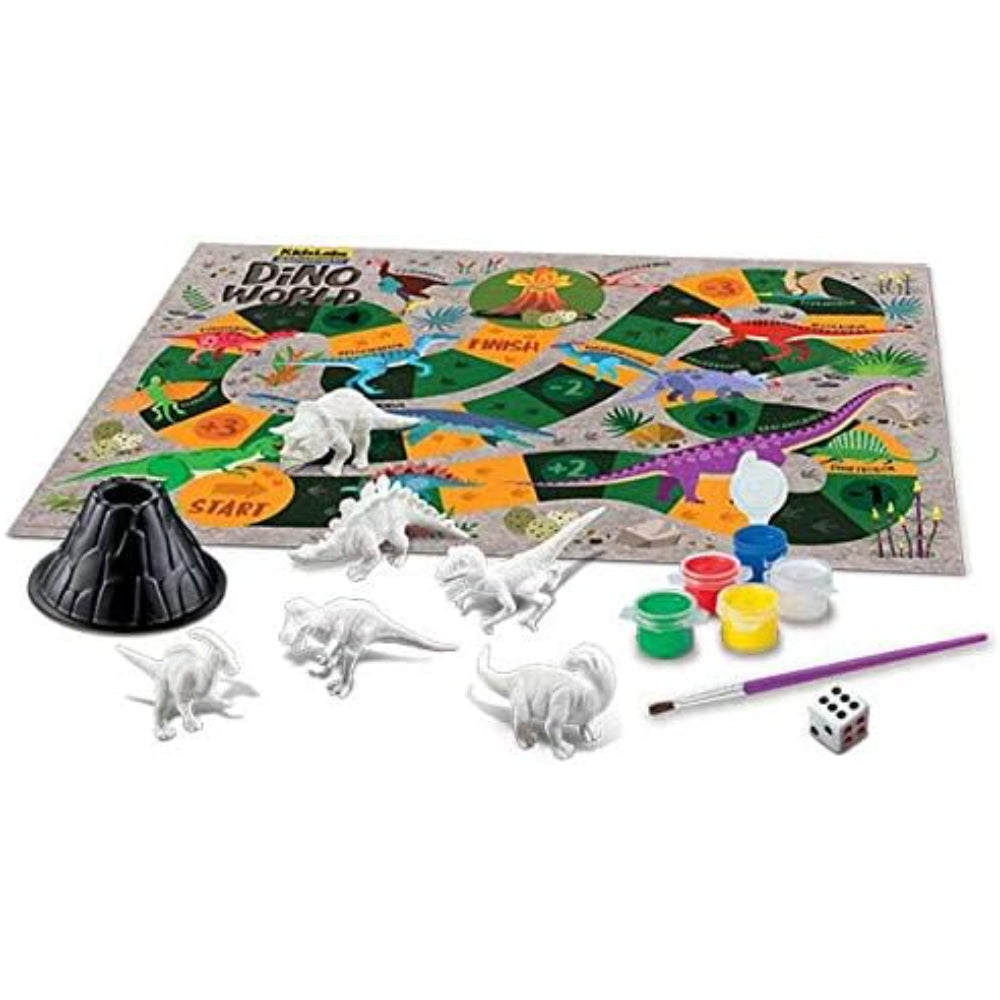 تمثال ديناصور × 6 ، بركان ، طلاء ، فرشاة طلاء ، نرد ، ورقة ألعاب (42 × 29 سم / 16.5 × 11.4 بوصة) مع تعليمات مفصلة.