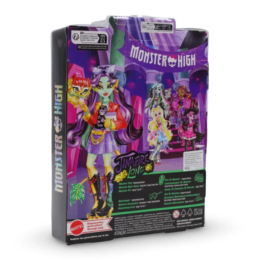 Bring the heat with the Mattel Monster High Jinafire Long Fashion Doll! Fierce, fiery, and fabulously fashionable, Jinafire stuns in a dragon-inspired outfit and comes with her loyal pet dog Cloudy "Yun Yun" plus seven stylish accessories to spark imaginative play.