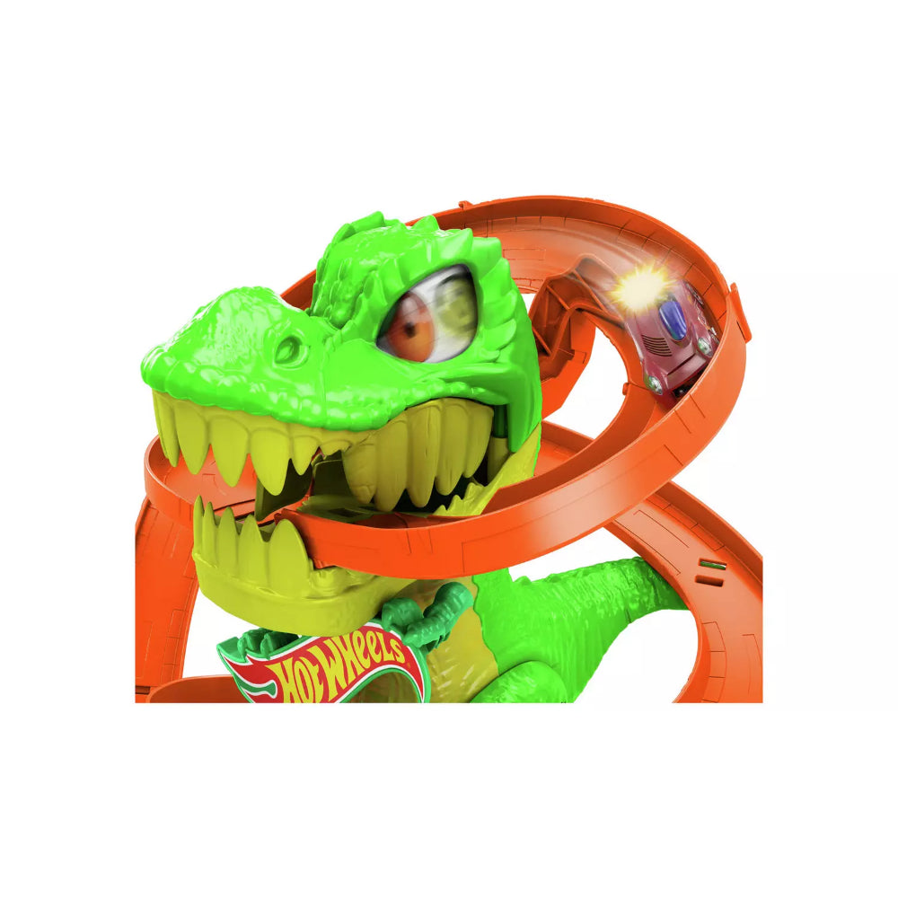 • Features a massive T-Rex enemy that kids can battle with their Hot Wheels cars