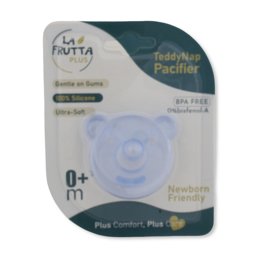 A soothing silicone pacifier from La Frutta designed to comfort your newborn and support natural sucking.
