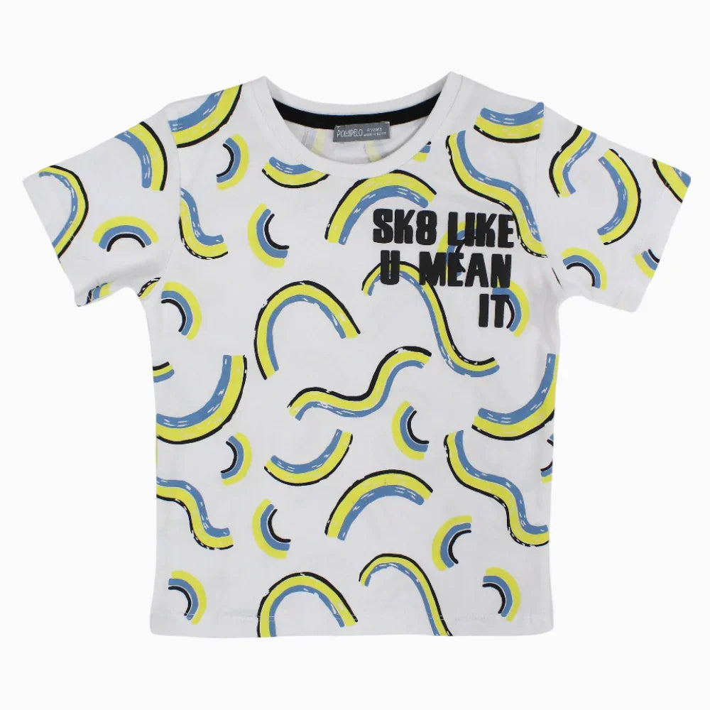 Baby Boys Cotton T-Shirt - White with Fun Print