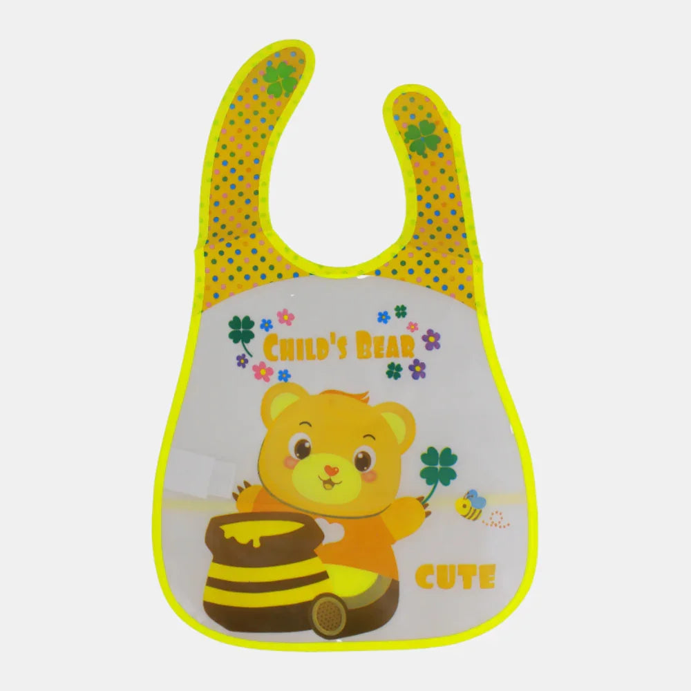 Make mealtime mess-free with this adorable baby bib, designed for comfort and practicality. Featuring a cute bear print on a yellow background, it’s the perfect blend of style and functionality for your little one.