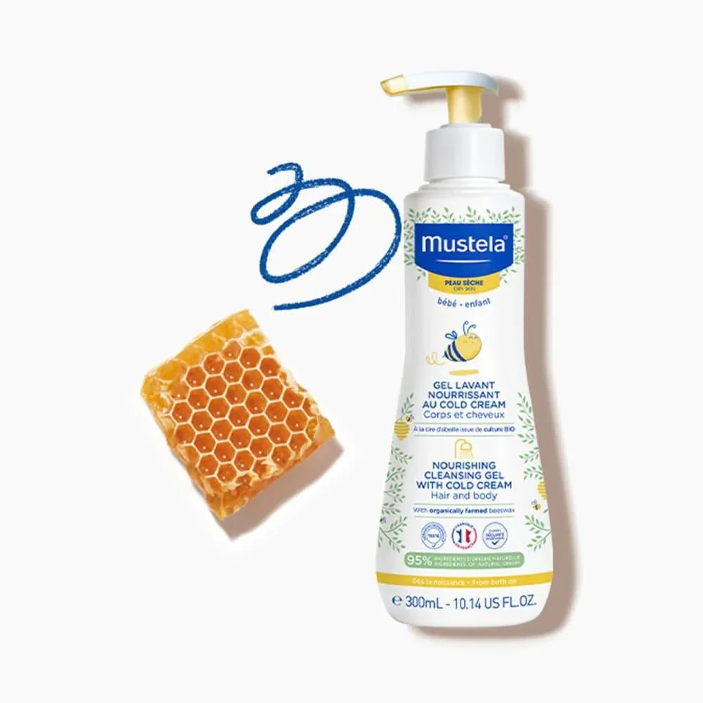 شمع العسل الممزوج بالكريم البارد يغذي بشرة الطفل بينما يحمي أيضًا بشرة الطفل الرقيقة من آثار الاستحمام الجافة.