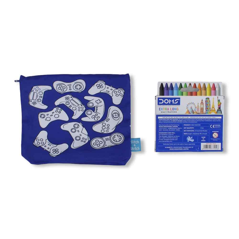 Gamer Coloring Pencil Case with Extra Long Wax Crayons 12 Colours + 1 Silver