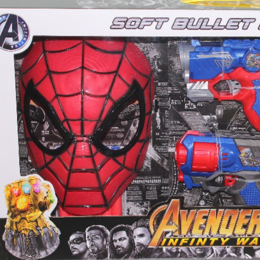 Soft bullet blaster toy set inspired by Avengers: Infinity War, featuring Spider-Man for exciting and safe action-packed play.