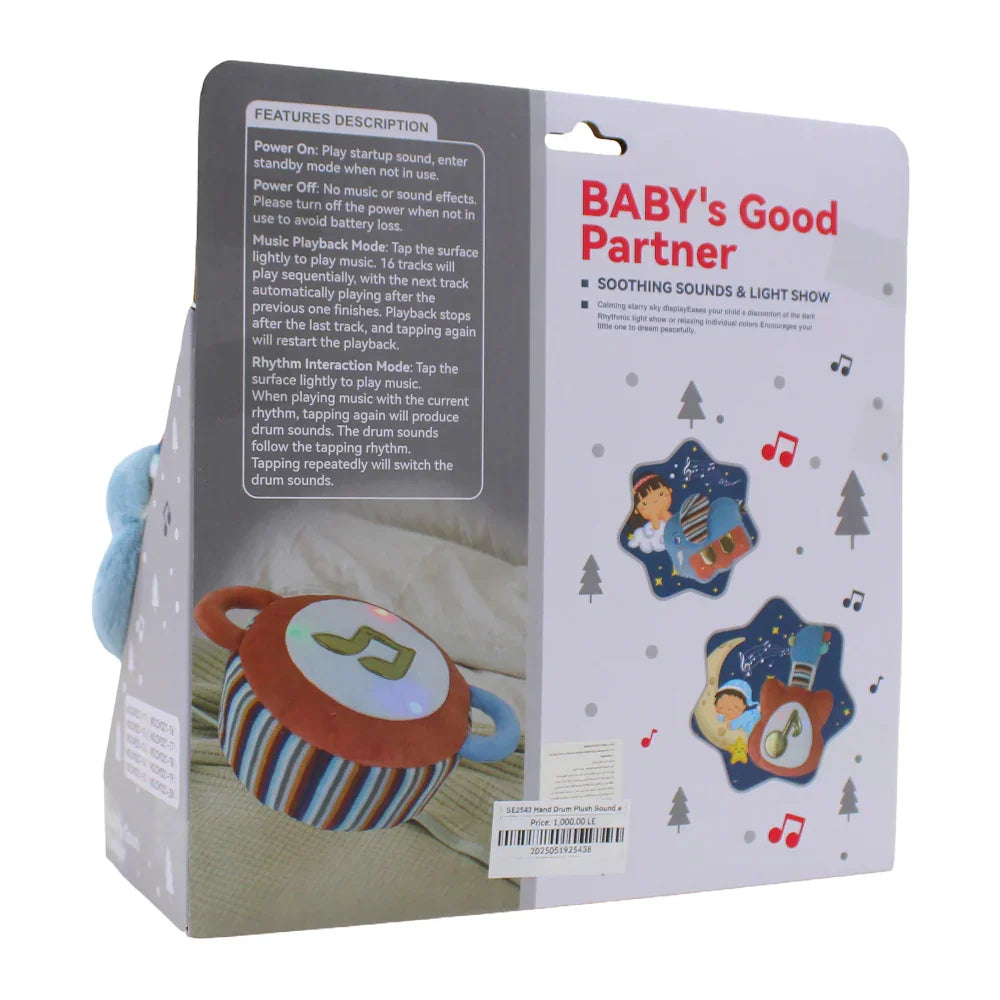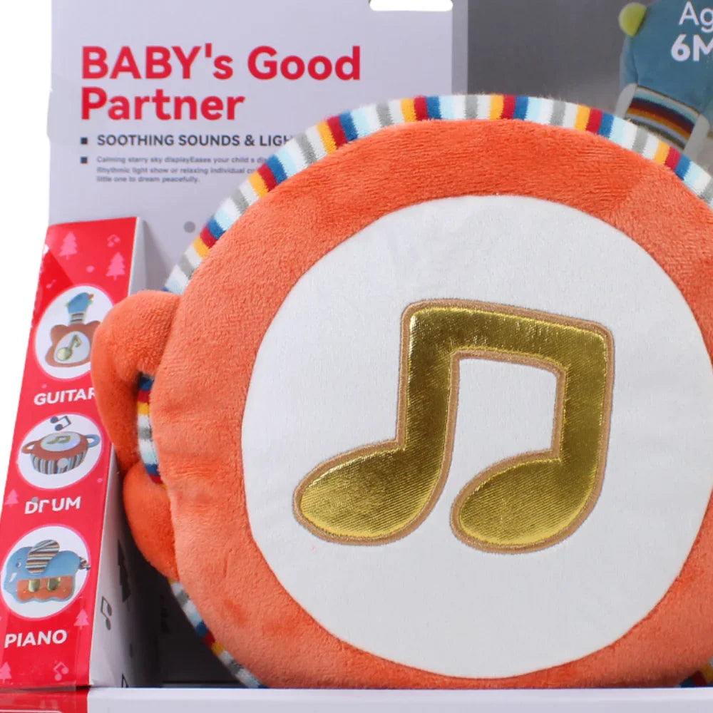 A soft and interactive plush drum that combines playful lights, fun sounds, and a cuddly design, making it a perfect toy for curious little ones.