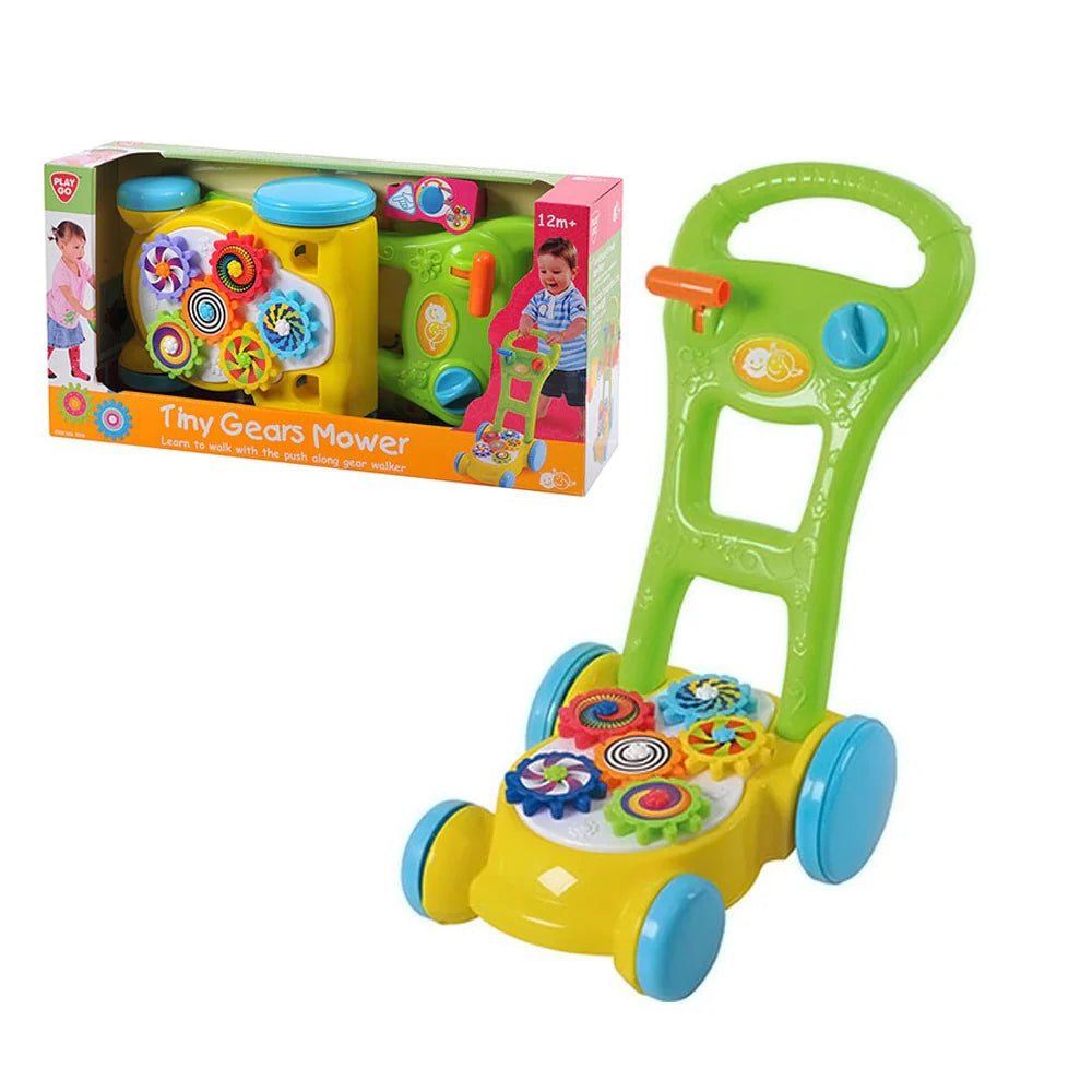 PlayGo التروس الصغيرة رفيق الدفع للجزازة الدائمة لحياتك المتنامية هي خيار أفضل لمساعدة الأطفال على ممارسة الوقوف بمفردهم مقارنة بالمشاية الجالسة. العجلات سهلة المناورة بواسطة Baby حتى على السجاد. يمكن أن تمنع كتلة العجلة السقوط المفاجئ. مع صندوق ألعاب ، يمكنك وضع كتب / ألعاب للإعلان عنها