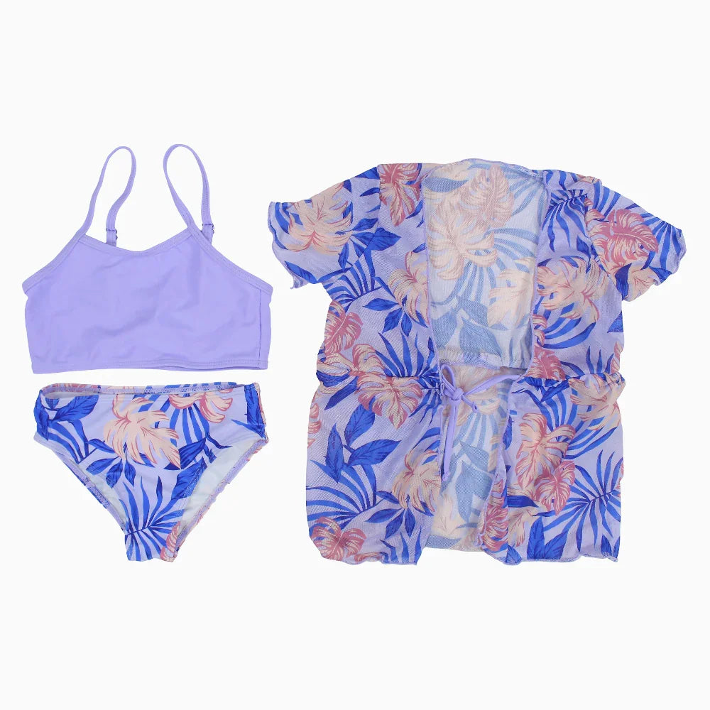 Girls 3-Piece Swimsuit – Purple with Floral Print