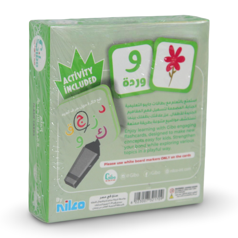 • Nilco Gibo Learn the Arabic Alphabet Flash Cards with colorful, kid-friendly letter cards