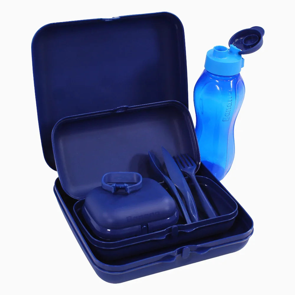 Navy Plastic Lunch Box Set – (5-in-1 Easy Lock)