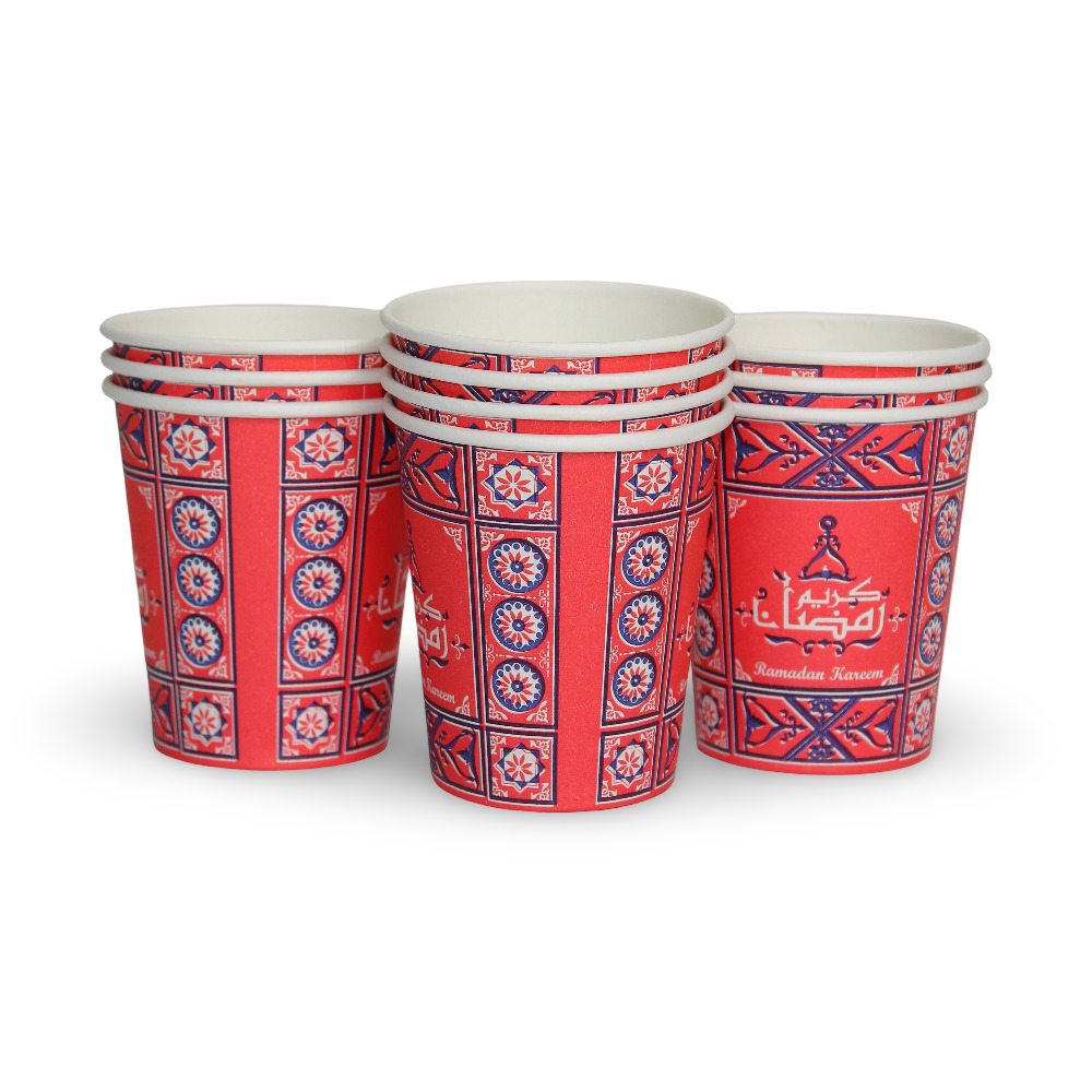 A festive set of Ramadan paper cups designed to add a special decorative touch to your iftar or suhoor gatherings.