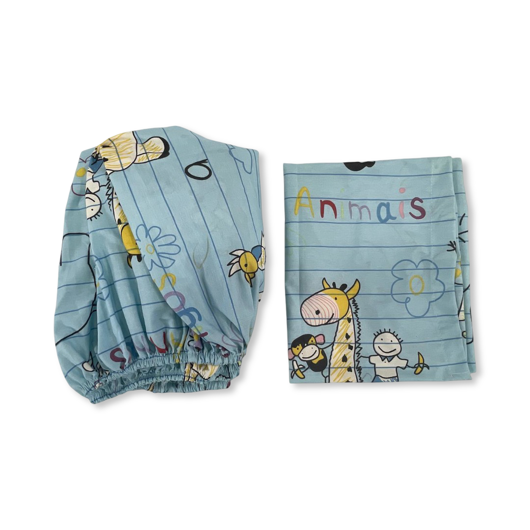A soft and breathable cotton bed sheet featuring a playful animals print, perfect for cozy and cheerful bedroom styling.