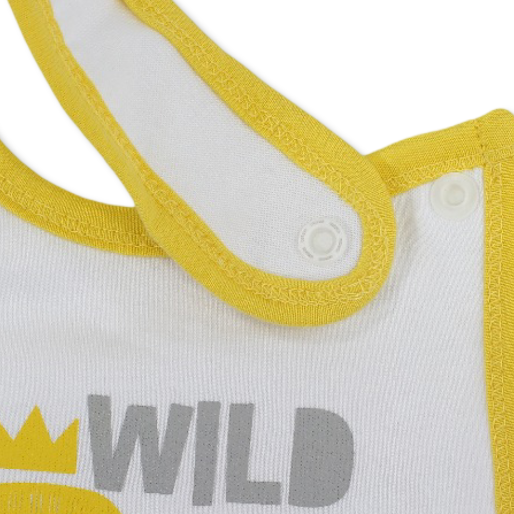 Cotton Baby Bib – Yellow & White with Wild One Print