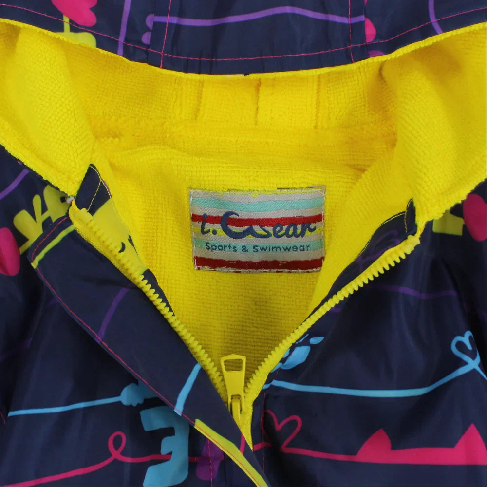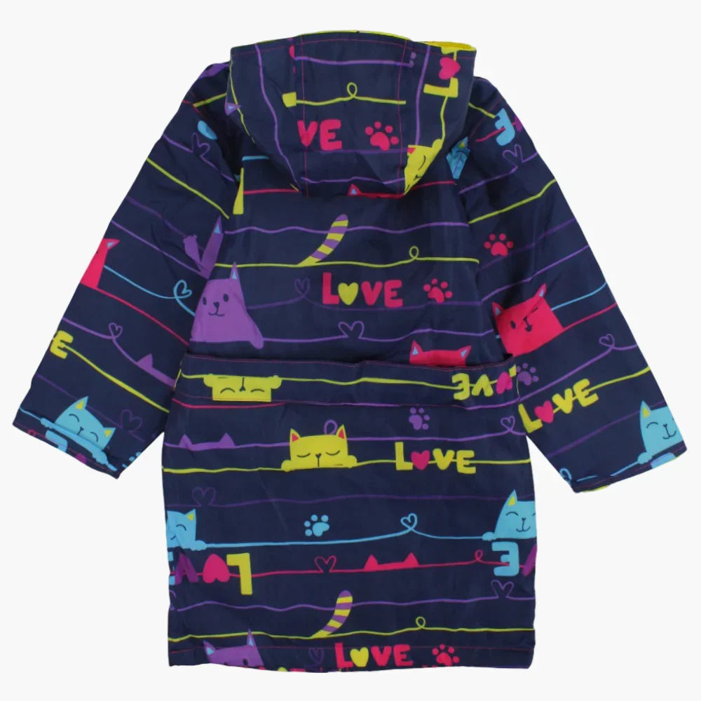Girls Swim Robe – Navy with Lovely Cats Print