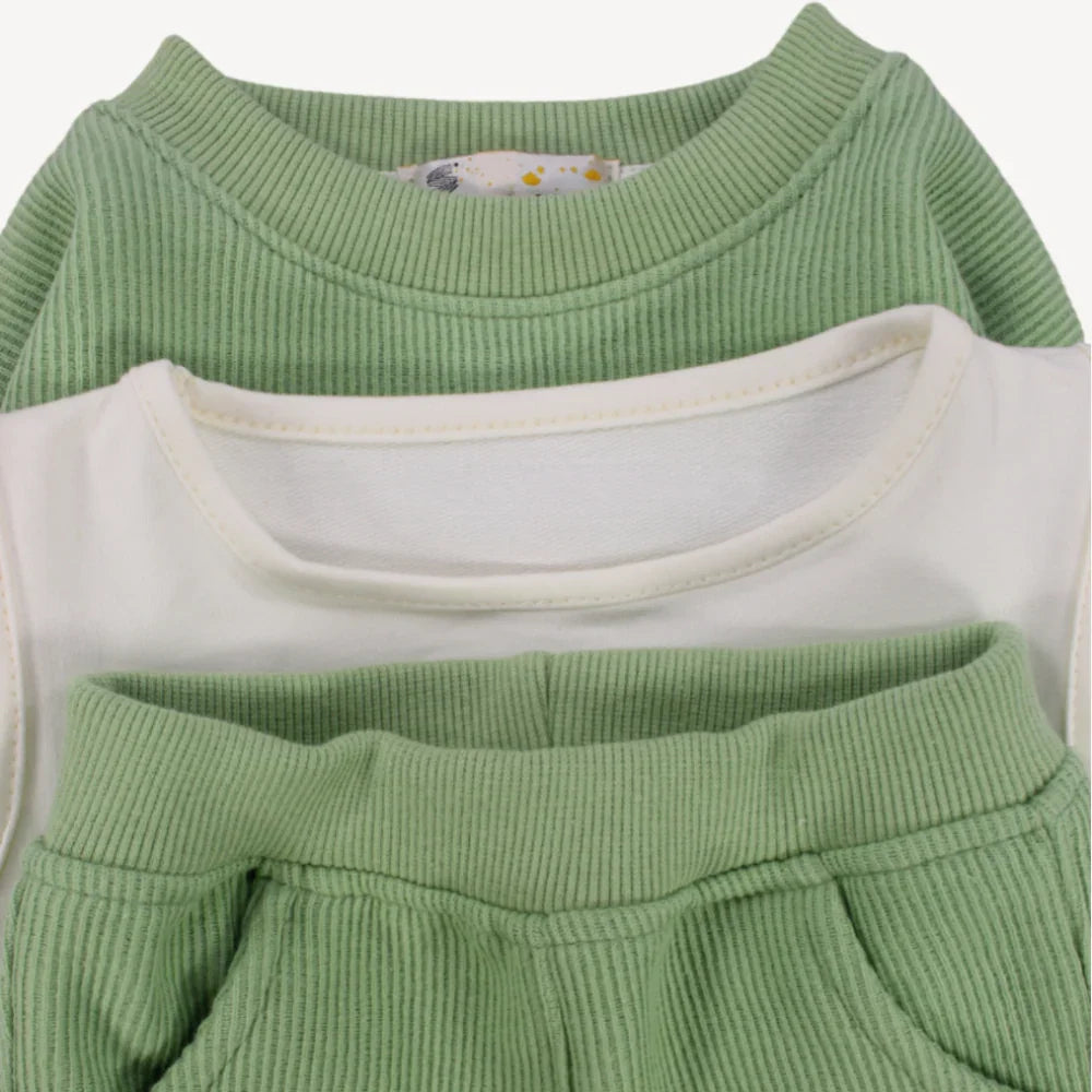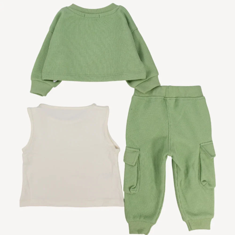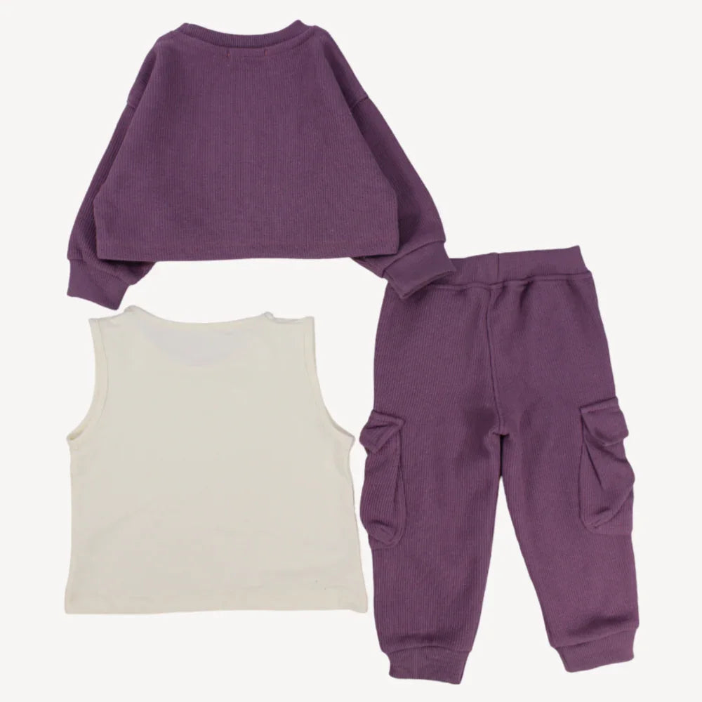Chill out and be comfy all day long with our 2-piece outfit set. The long-sleeved crop top and sleeveless under top ensure your little one is warm and cozy in the cold weather. The pants have cuffed hems and an elastic waistband for a comfortable fit throughout the day.