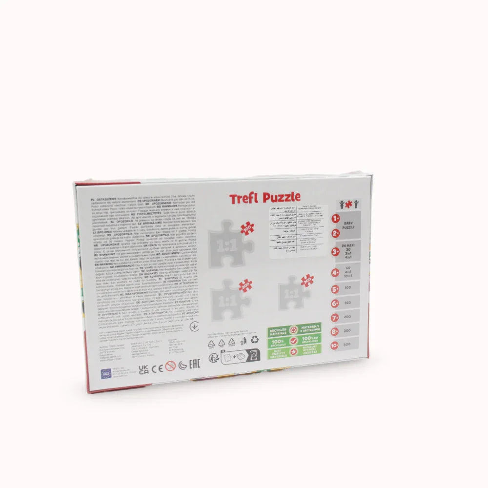 Puzzle "Minnie in the beauty salon" consisting of 100 elements, designed with all fans of the animated series "Minnie Mouse" in mind. After assembling the puzzle, a picture with dimensions of 410x275mm will be created. The product was made of high-quality materials, using special calendared paper that reflects light, which makes assembling easier. The product was manufactured in Poland, and ecological materials were used for production.