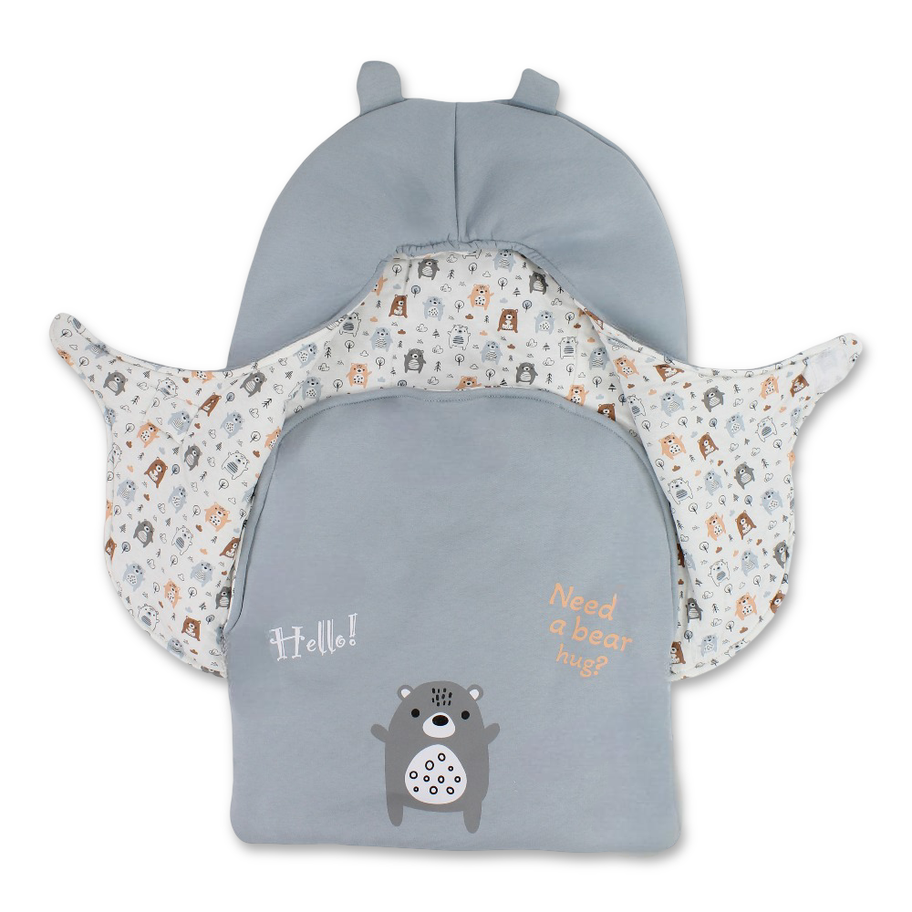 Wrap your little one in softness and warmth with this Cotton Baby Sleeping Bag with Bear Design. Thoughtfully crafted from gentle cotton fabric, it ensures your baby stays cozy and comfortable during naps or outings. The adorable bear print adds a playful touch, while the hooded design helps keep your baby’s head warm.