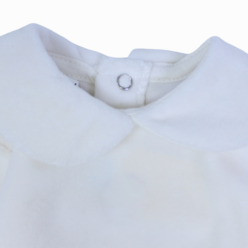 Gentle, warm, and perfect for tiny toes, this off-white velvet baby footie keeps your baby cozy from morning cuddles to peaceful naps.