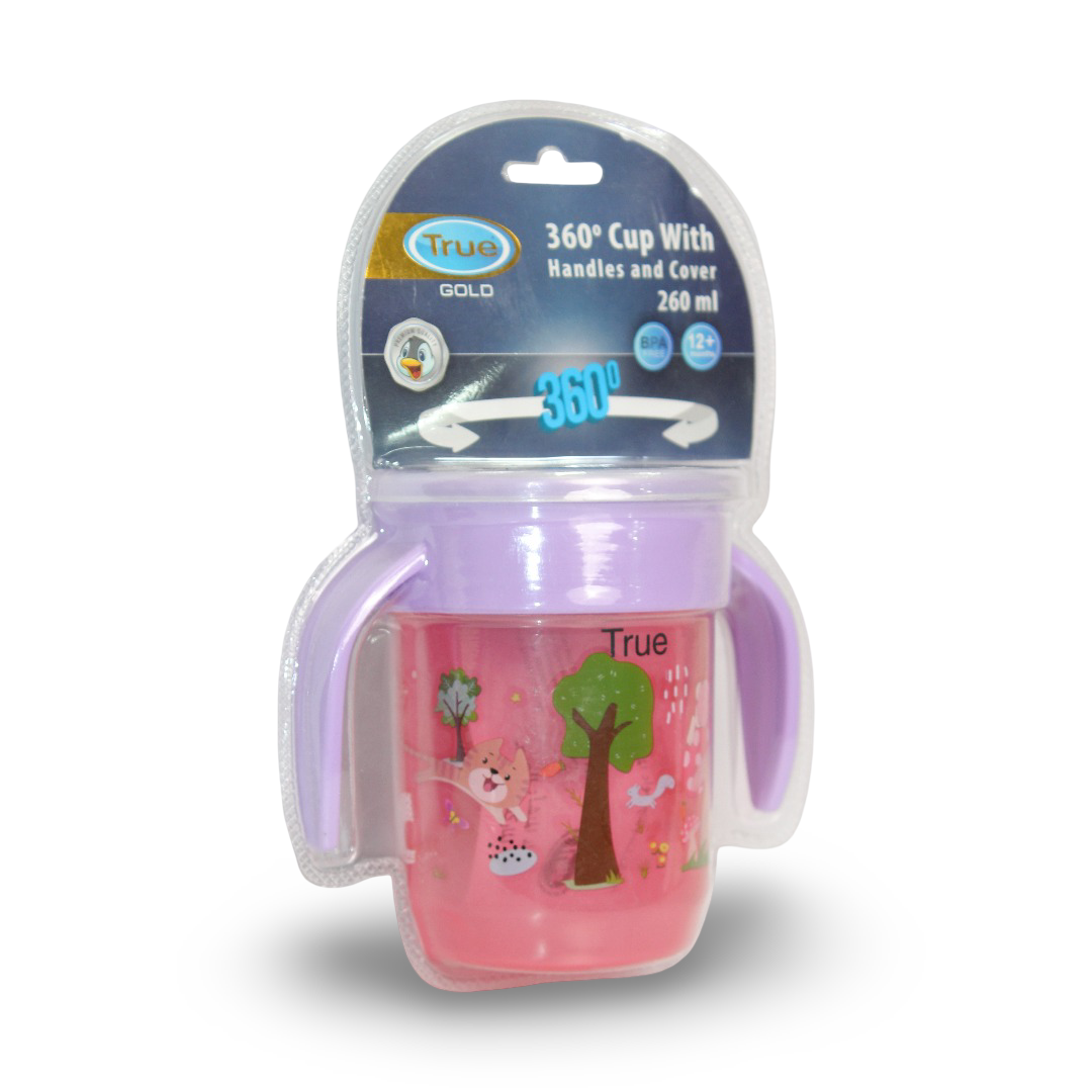 True Gold 360° Training Cup with Handles 260ml – Pink & Purple