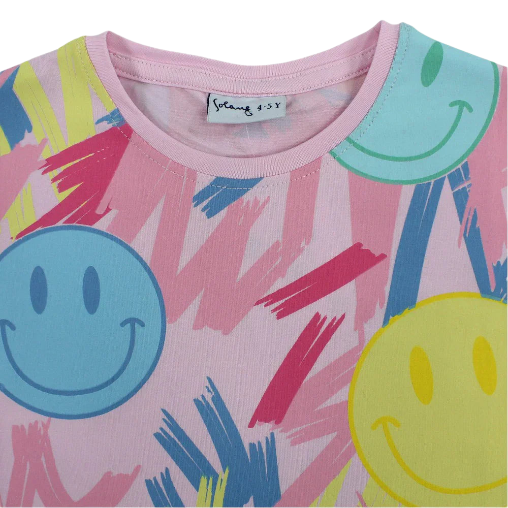Girls Cotton T-Shirt - Pink with Smiley Faces Print