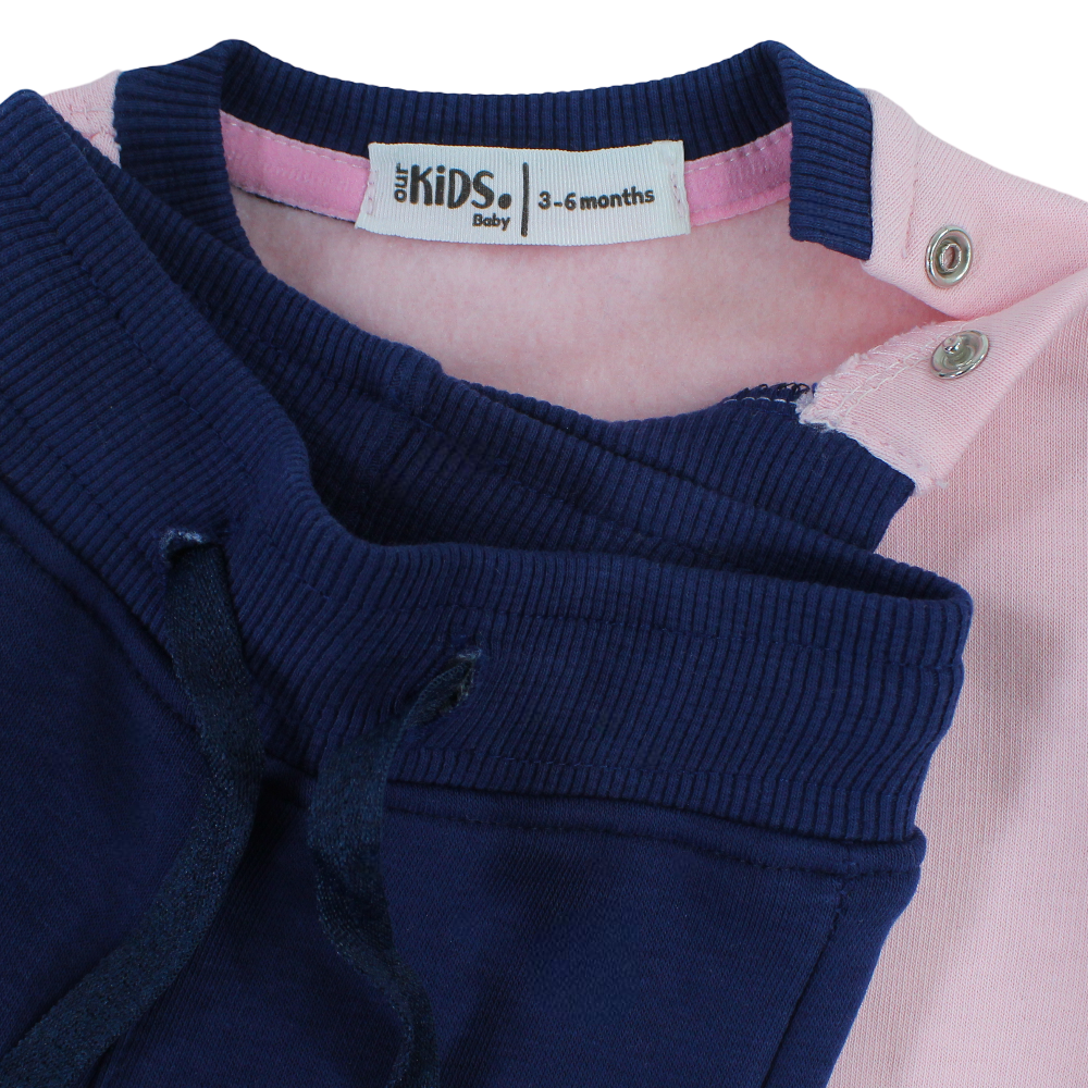 Baby Girls Cotton Pajama Set – Pink/Navy with Elephant Print