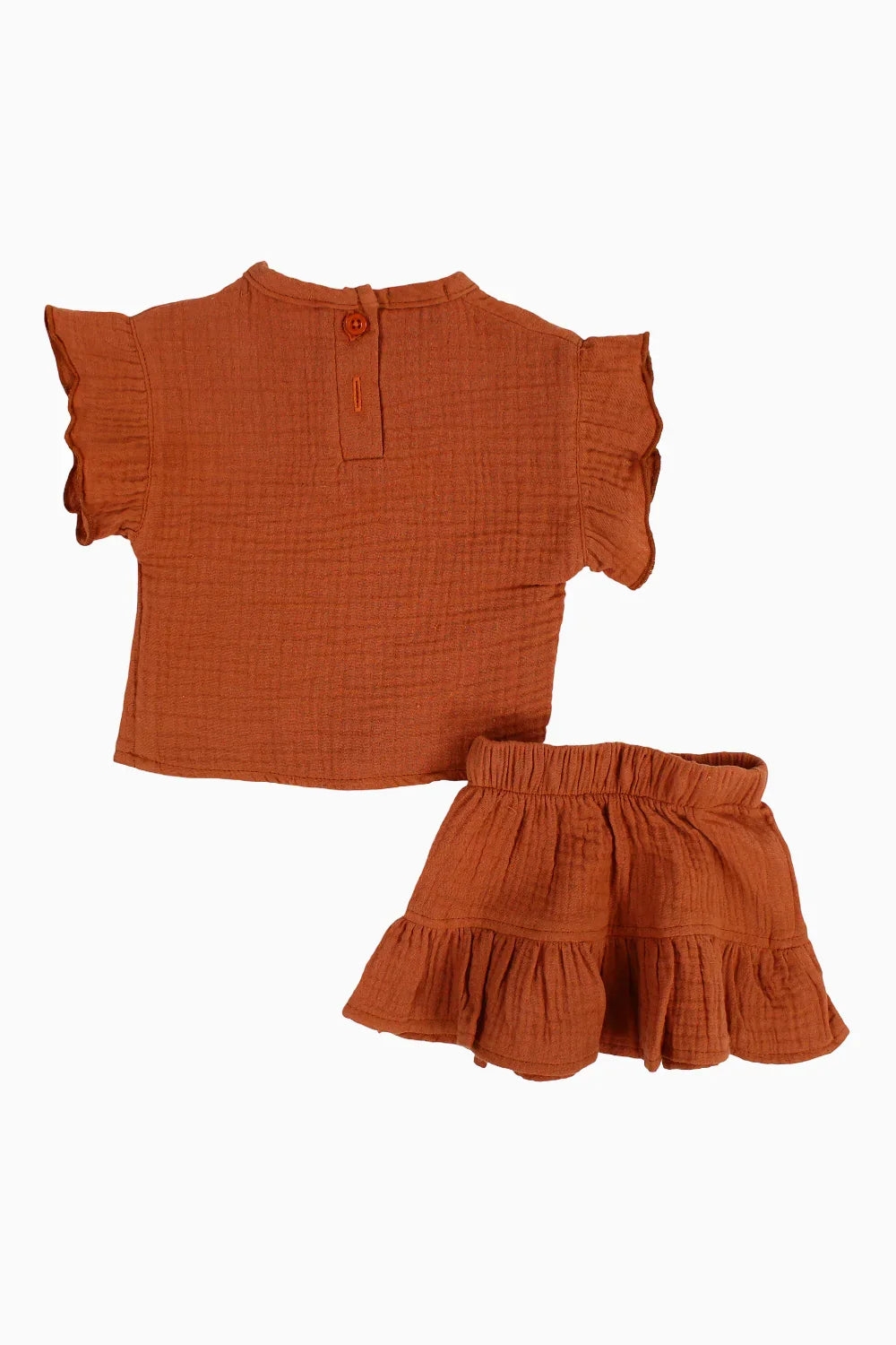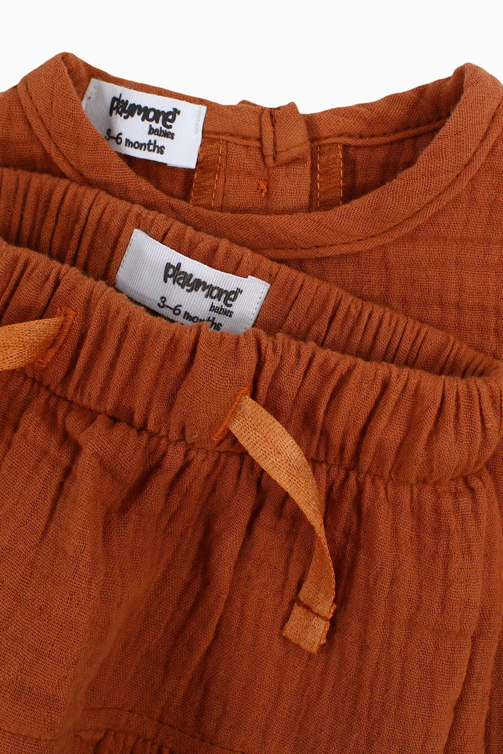 Baby Girls Cotton 2-Piece Outfit Set – Brick
