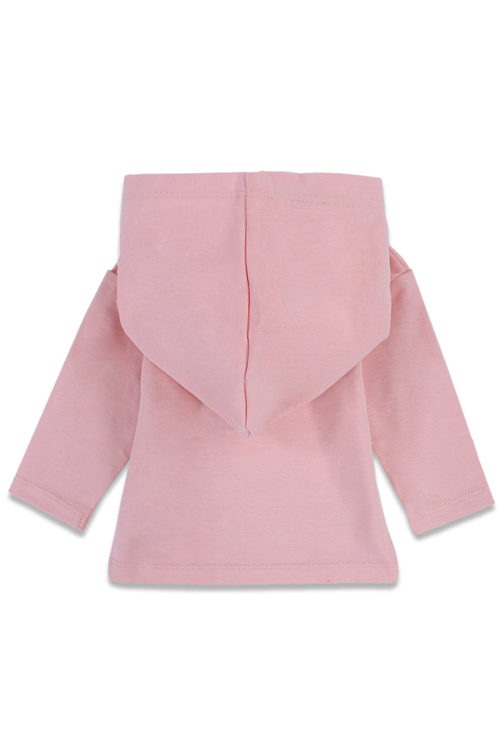 Baby Girls Cotton Hooded T-Shirt – Salmon with "Always Happy" Dog Print