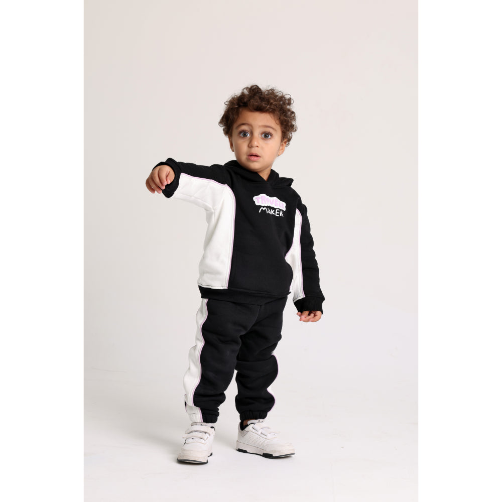 Unisex Cotton Hoodie – Black & Off-White with “Trouble Maker” Design
