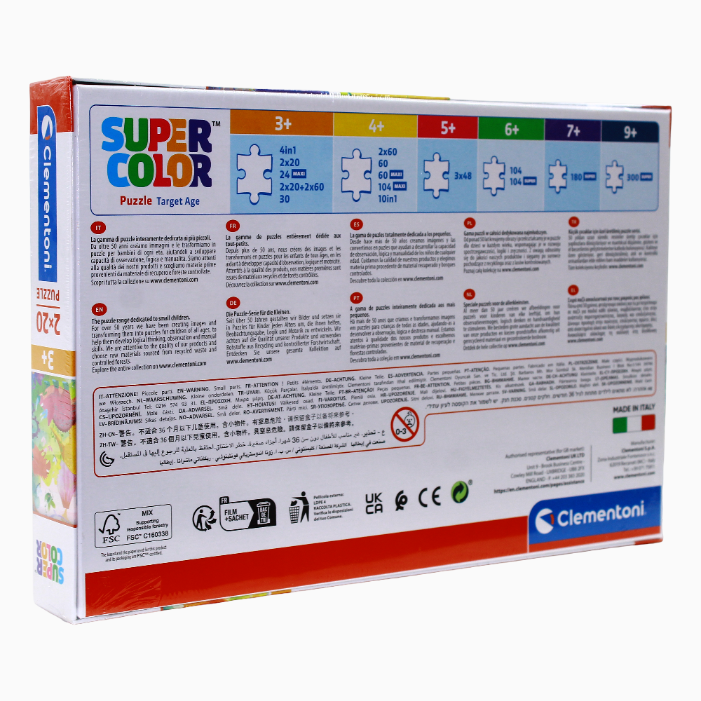 Clementoni Funny Dinosaurs Super Color 2-in-1 Puzzle – 2x20 Pcs