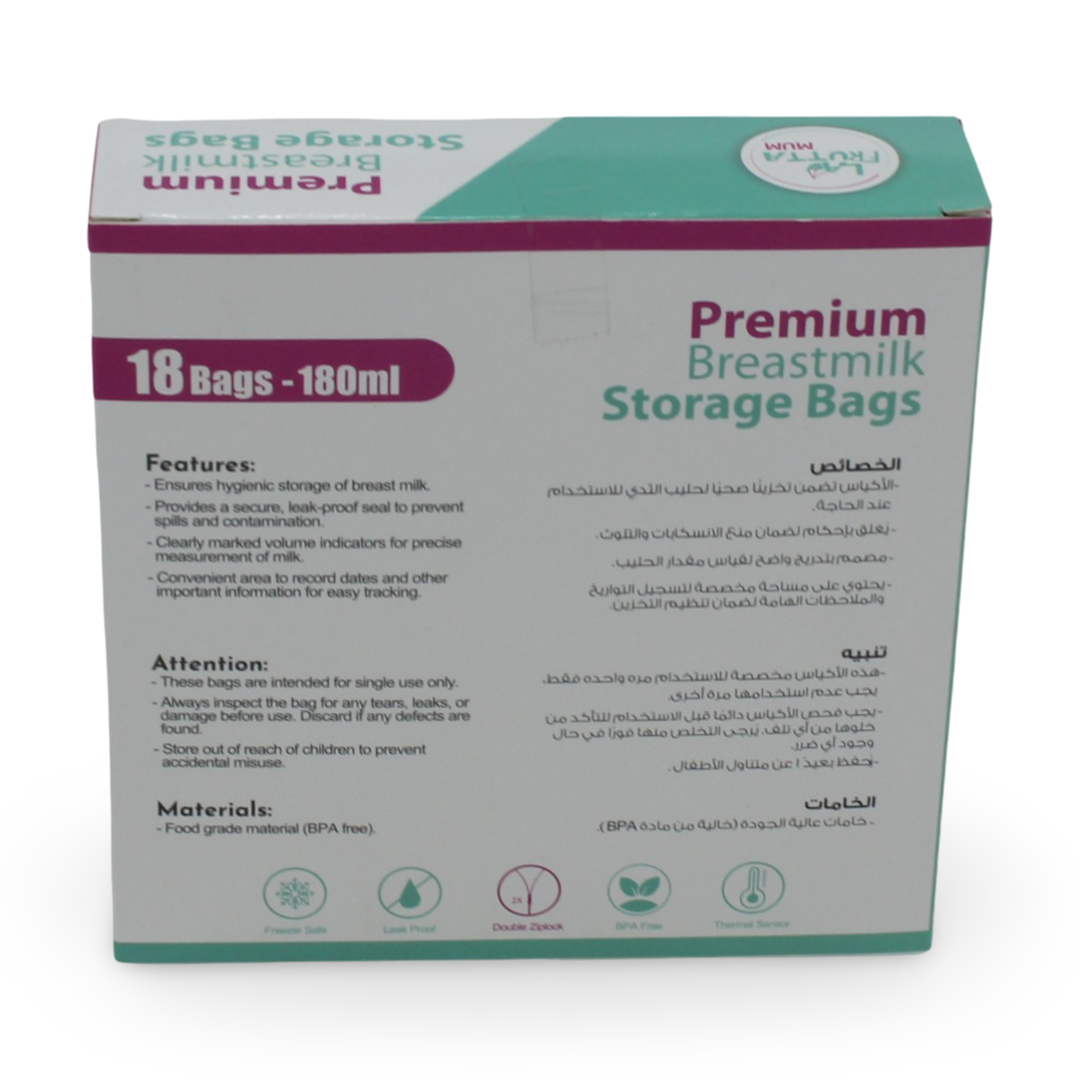 • 180ml capacity bags → Ideal size for storing pumped breast milk