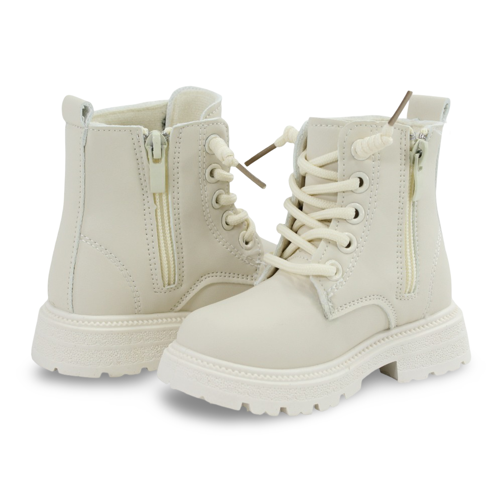 Baby Girls Leather Half Boots – Beige with Stitch Design