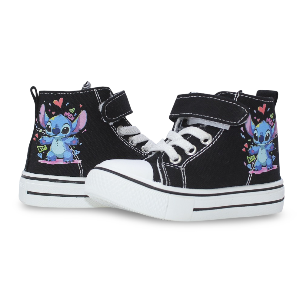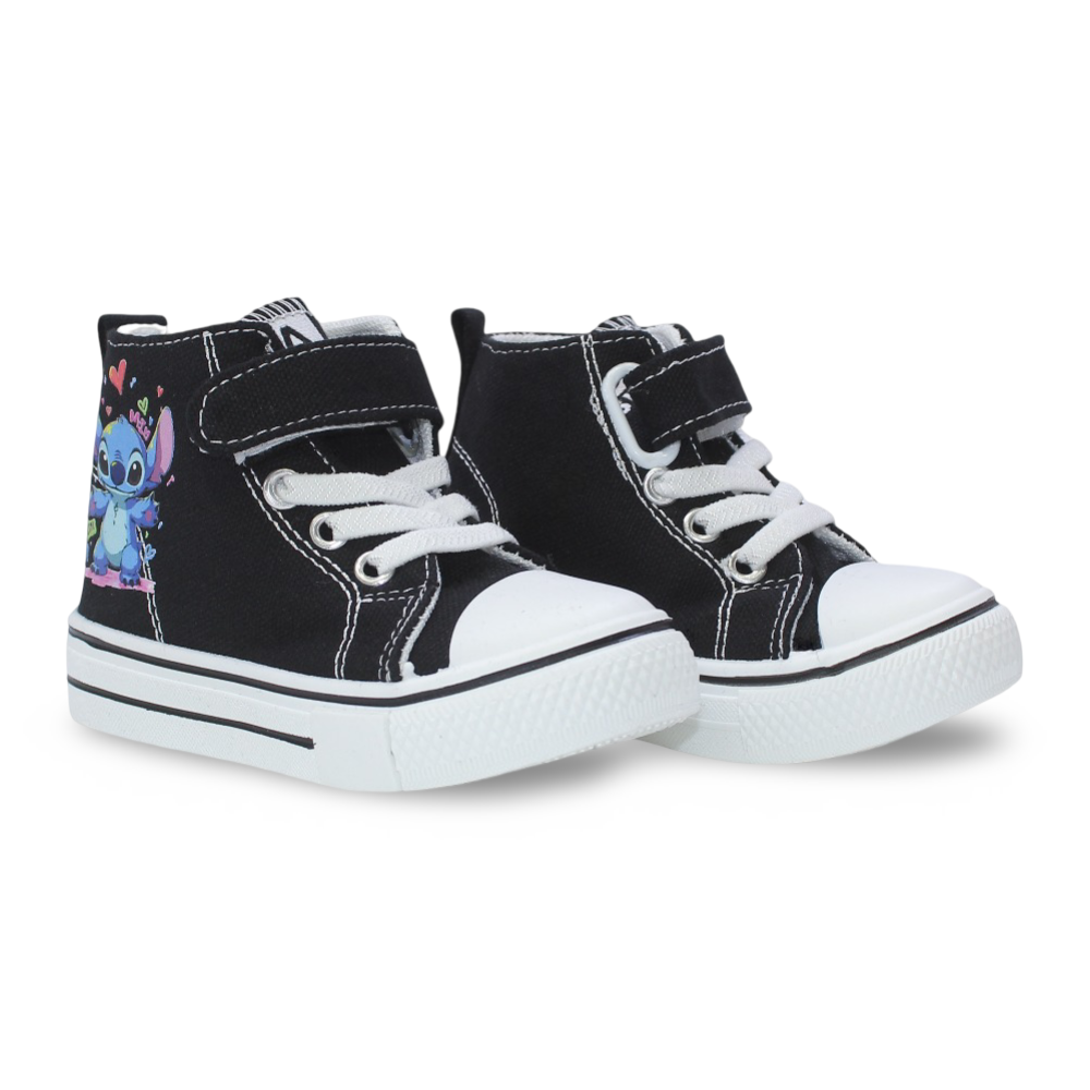 Baby Girls Canvas Half Boots – Black with Stitch Print