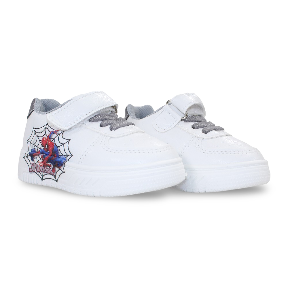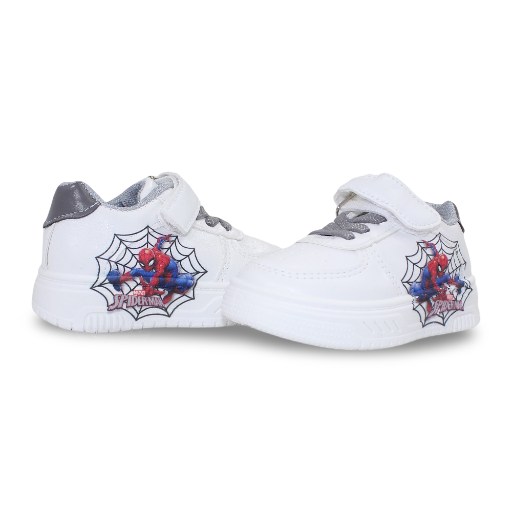 Baby Boys Leather Sneakers – Grey with Spider-Man Print