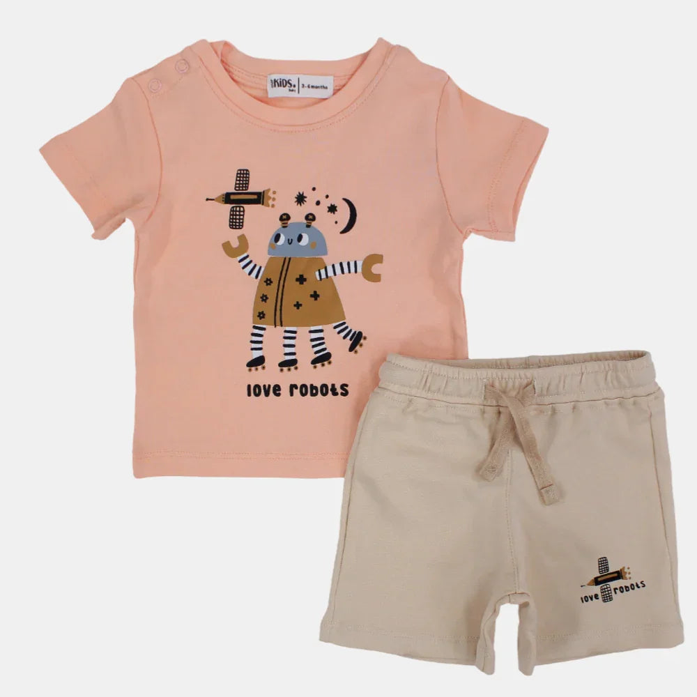 Baby Boys Cotton Pajama Set – Salmon "Love Robots" Print