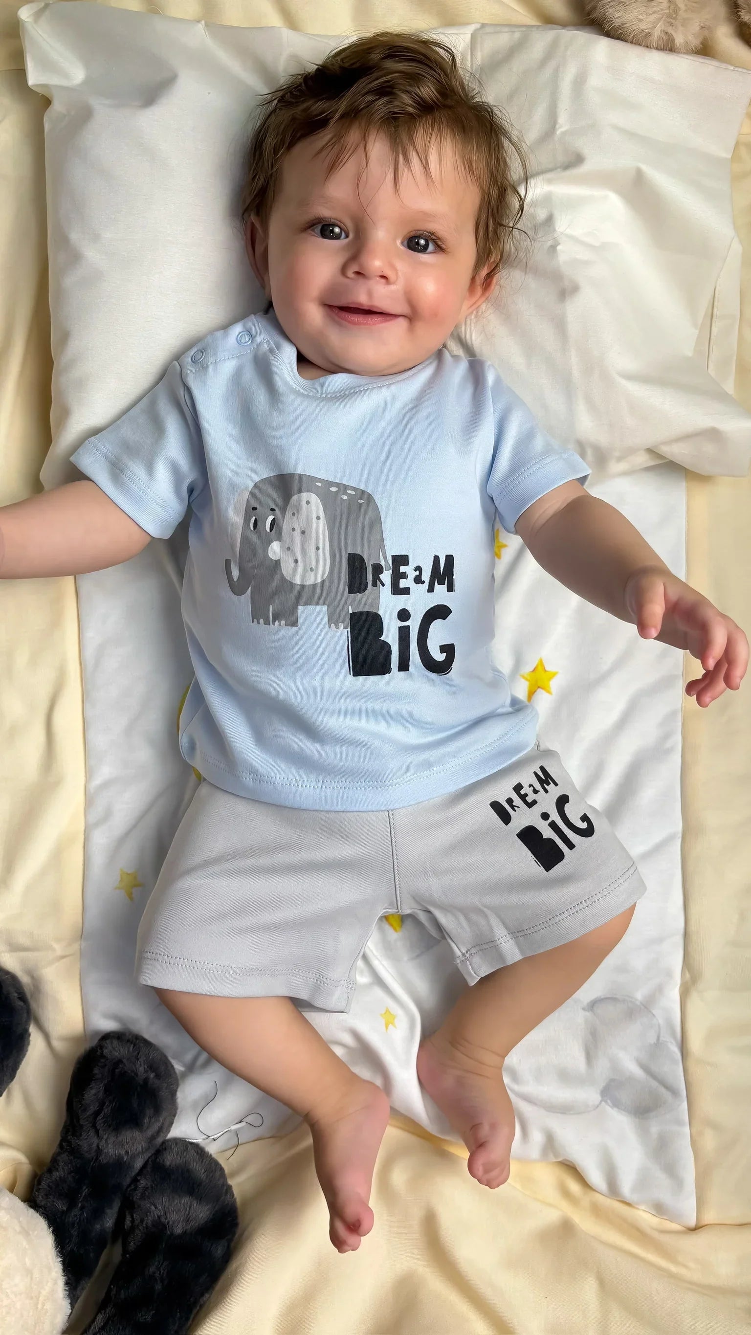 Make bedtime extra cozy with this soft and breathable cotton pajama set in a soothing baby blue shade. Featuring a fun "Dream Big" print, it's perfect for little ones who love comfort and style.