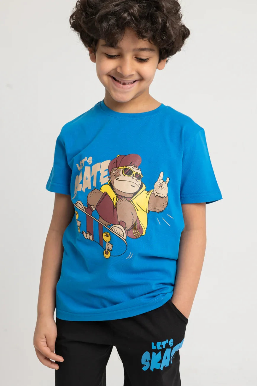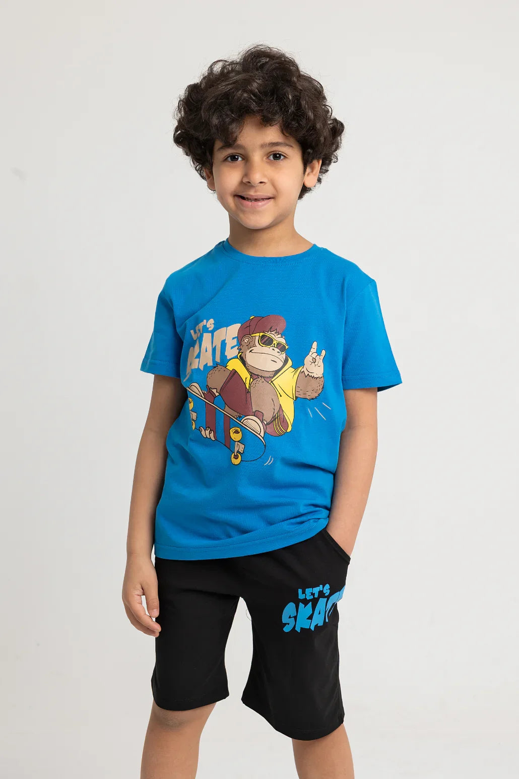 Keep him cool and comfy with this fun cotton pajama set featuring a playful "Let’s Skate" print. Designed for easy movement and all-night comfort, it's a great pick for warm nights.