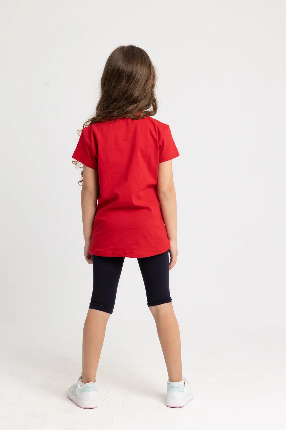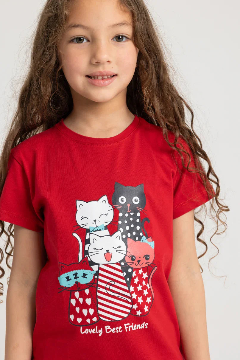 Girls Cotton Pajama Set – Red "Lovely Best Friends" Kittens Print