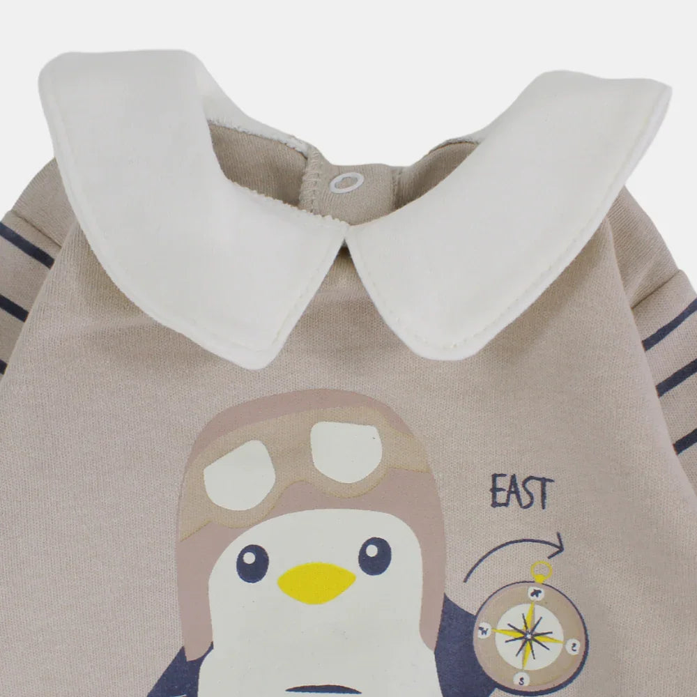 Beige Penguin Long-Sleeved Footless Onesie