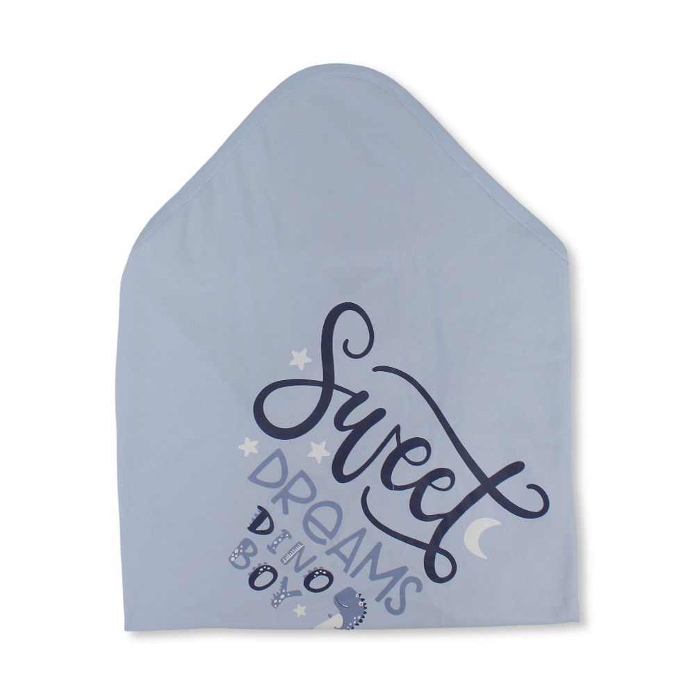 Cotton Baby Blanket – Baby Blue & Navy with "Dino Boy" Design