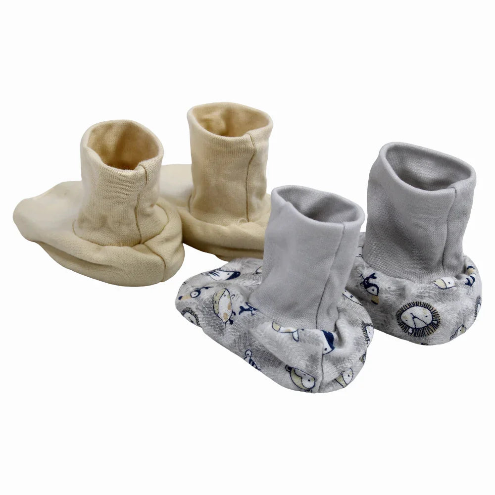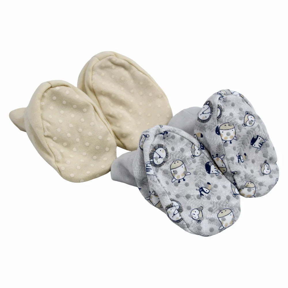 Baby Boys Cotton Footies – Beige & Grey with Animal Design (2Pcs)