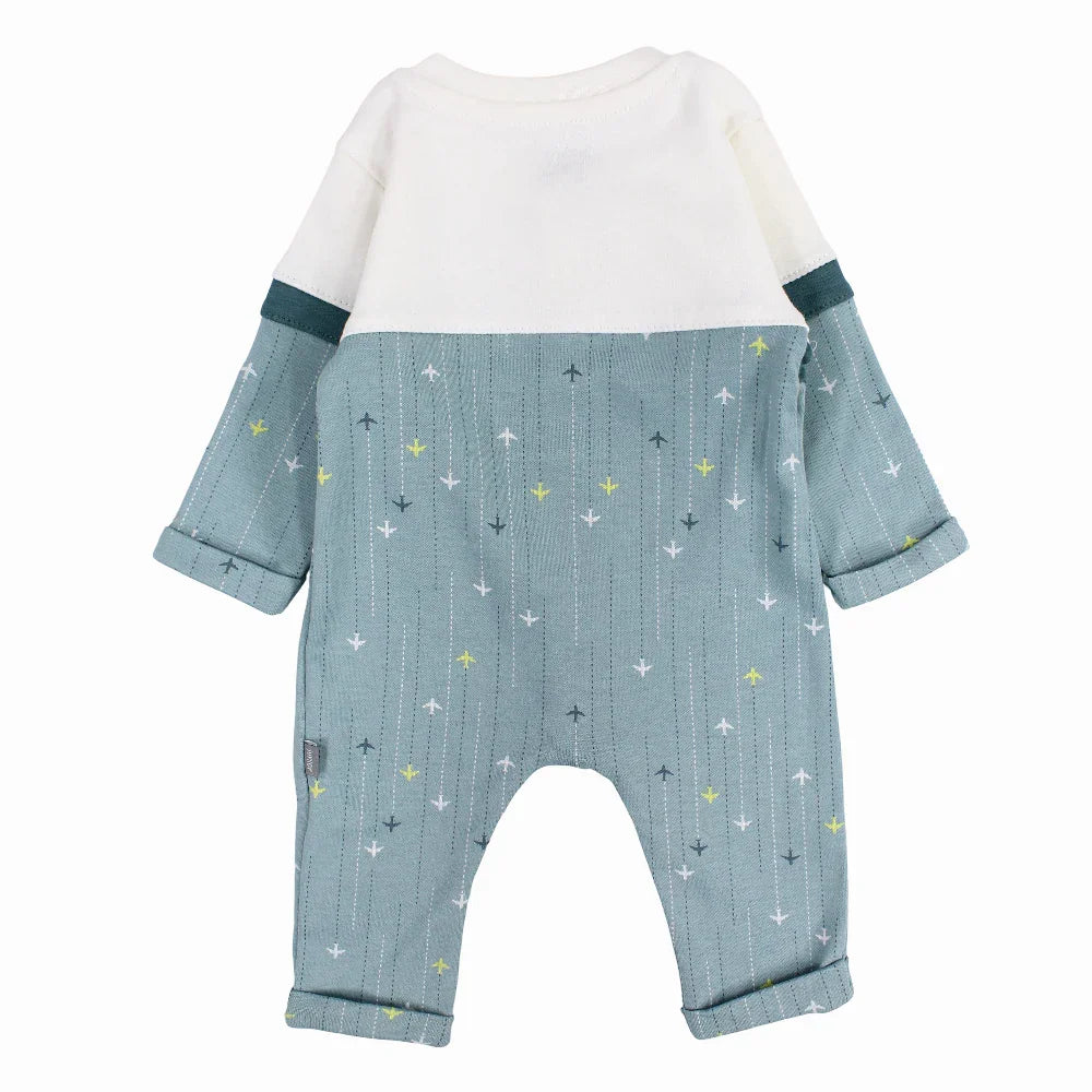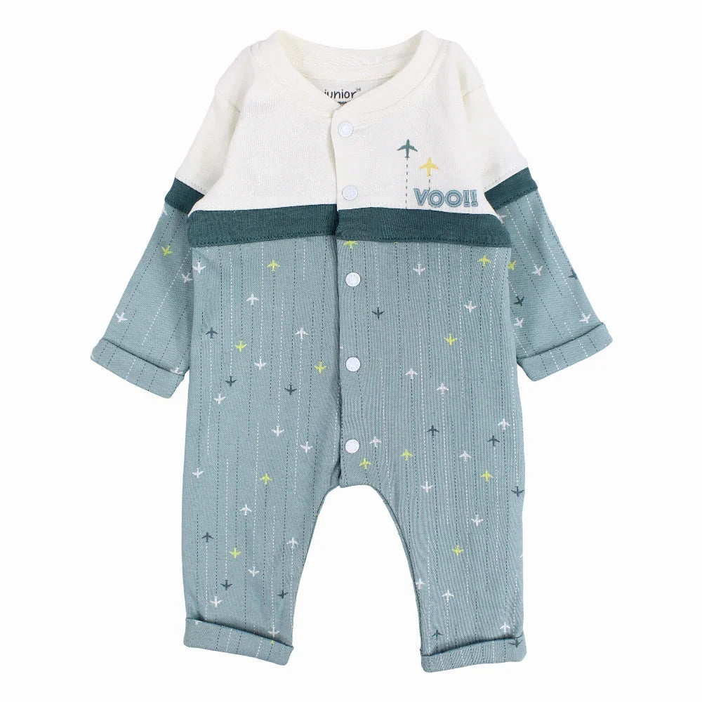 Baby Boys Cotton Footless Onesie - Mint with Airplane “VOO!!” Print