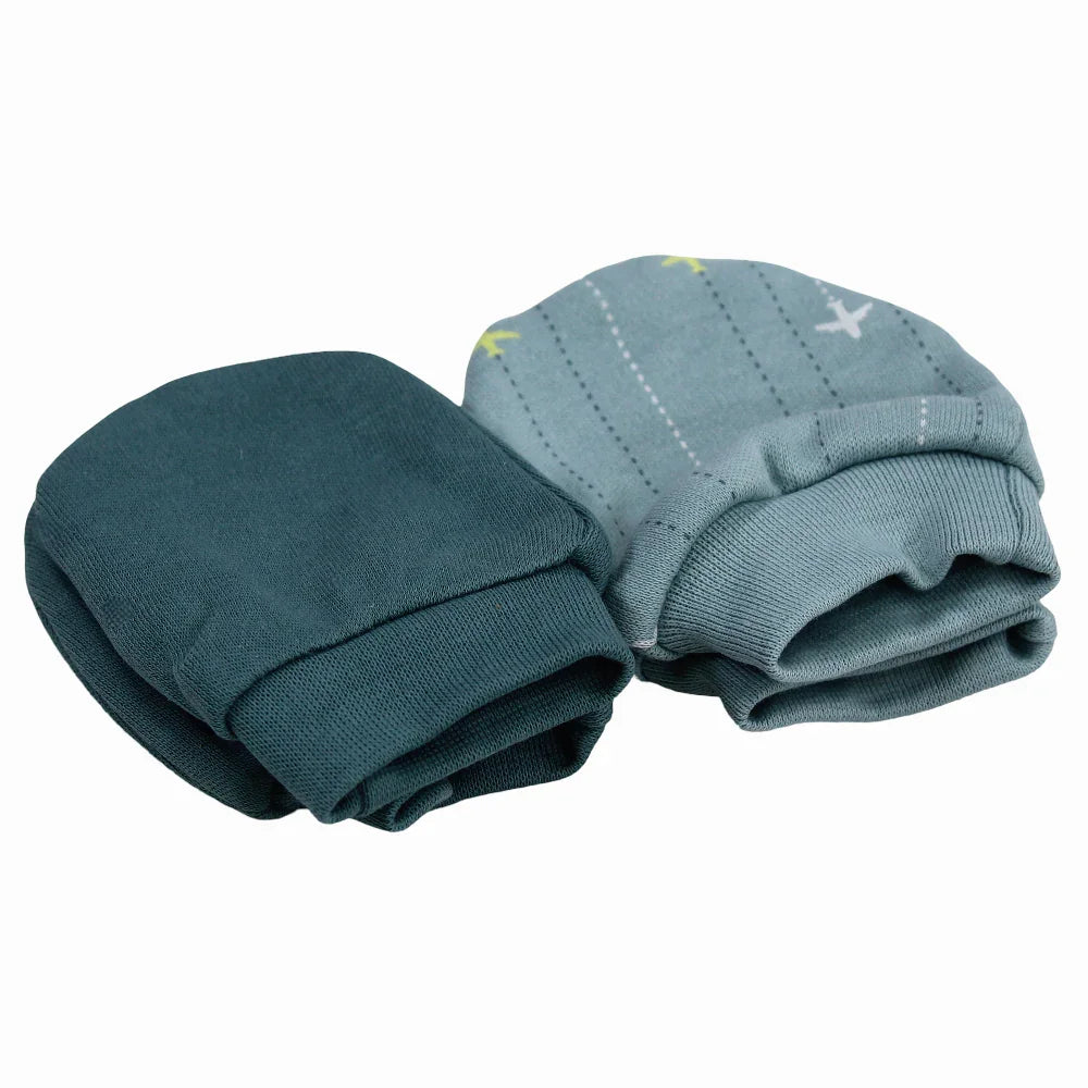 Baby Boys Cotton Hand Mittens – Mint with Airplane Design (2Pcs)