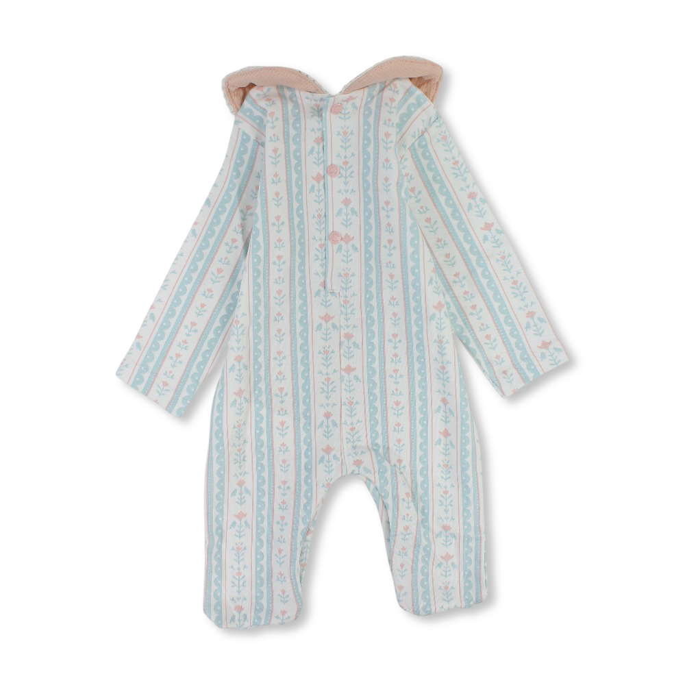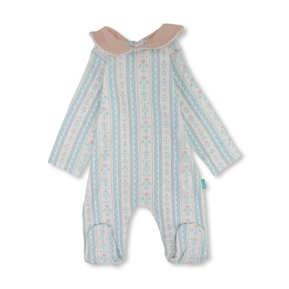 Baby Girls Cotton Baby Footie – Off-White with Striped Rose Print