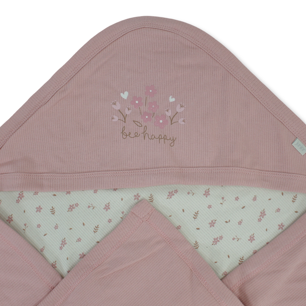 Cotton Baby Blanket – Salmon & Off-White with Flower Print