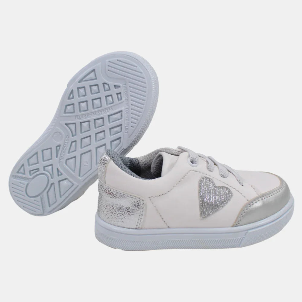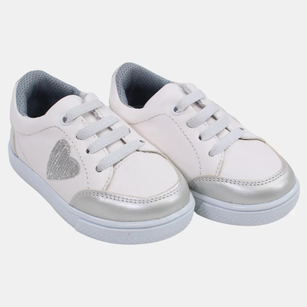 Classic meets sparkle in these white and silver sneakers for girls. Made from durable leather with a hint of shine, they’re perfect for everyday adventures or dressing up a casual look.